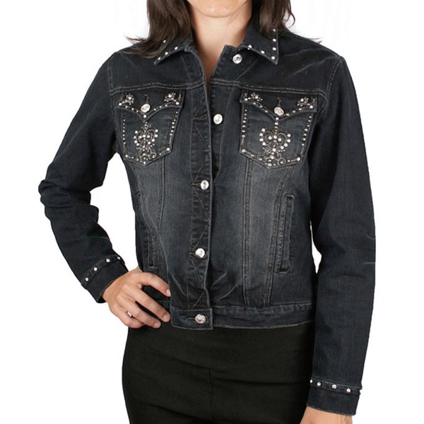 CLOSEOUTS . The ultra-dark wash of Ethyland#39;s Embellished Cross denim jacket provides a chic backdrop for the rhinestone- and stud-embellished embroidery on the back and front patch pockets. Available Colors: BLACK SANDED. Sizes: XS, S, M, L, XL. Read more